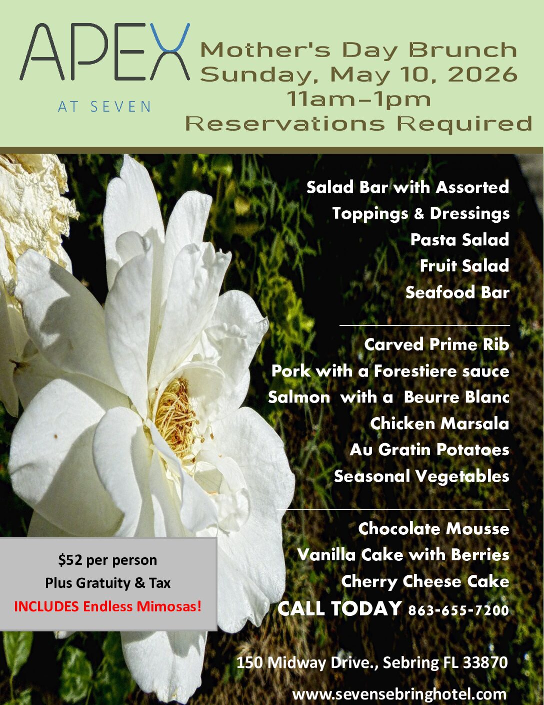 Reservations: 888-SEVEN-01 (7383601)